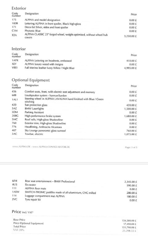 23 Inch Alpina Classic Forged Alloy Wheels | Comfort Front Seats with Electric Seat Adjustment with Memory Function | Harman/ Kardon Loudspeaker System | Lavalina Leather Steering Wheel with Blue/ Green Stitching | BMW Laserlights | Sun Protection Glazing | Parking Assistant | High Performance Braking System | High-Gloss Shadowline Roof Rails | Anthracite Alcantara Headlining | Sky Lounge Panoramic Glass Sunroof | Electric Deployable Towbar | BMW Professional Rear-Seat Entertainment | Six-Seater | Alpina Floor Mats | CNC Milled Aluminium Switch-Tronic Paddles | Alpina Luxury Wood with Insignia | Alpina Embossed Lettering on Headrests | BMW Live Cockpit Professional in Alpina Design | Sports Rear Differential | Soft-Close Doors | Heated Front and Rear Seats | Alpina Rear Valence with Twin Double Tailpipes | Front Heat Comfort Package | Instrument Panel in Leather | Head-Up Display | Crafted Clarity Glass Application for Interior Elements in Alpina Design | Front Air Inlet and Trims in Shadow Chrome | High-Gloss Shadowline Exterior Trim | Anti-Dazzle Folding Door Mirrors | Alpina Stainless Steel Exhaust System | Enhanced Bluetooth with Wireless Charging | Drive Performance Control | Driving Assistant Professional | Connected Package Professional | Heated Steering Wheel | Apple CarPlay | Comfort Access with Smart Opener | BMW Display Key | Ambient Interior Lighting | Four-Zone Automatic Climate Control | Active Air Stream Kidney Grilles | 2-Axle Air Suspension with Alpina Sport Suspension | Executive Drive Pro | Integral Active Steering | Privacy Glass | Split Powered Tailgate |