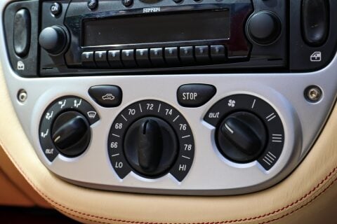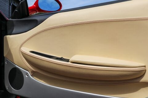 Ex-Demonstrator Example | Challenge Rear Grille | 18 Inch ‘Modular’ Optional Split Alloy Wheels finished in Silver | Crema Leather with Contrast Bordeaux Stitching and Piping | Bordeaux Carpets | Electrically Adjustable Front Seats | Brake Callipers finished in Red | Scuderia Ferrari Wing Shields | Leather Steering Wheel | Original Ferrari Stereo | Electric Windows | Heated Windscreen | Electric Wing Mirror Adjustments | Alloy Finish to Central Tunnel | Ferrari Formula 1 Championship Plaque | 360 Spider Interior Badging | Shift Paddles Finished in Black | Cavallino Embossed on Headrests |