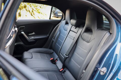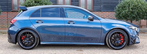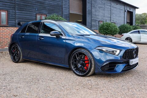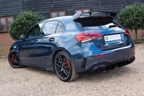 Mercedes-Benz A45S AMG Plus 2.0 4Matic+ registered October 2022 (72) finished in Denim Blue Metallic with Black Leather Interior.
