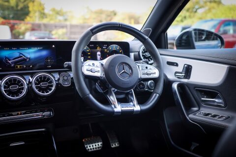 19 Inch Diamond Cut Forged Alloy Wheels finished in Satin Black | Panoramic Tilt/ Slide Sunroof with Powered Blind | Apple CarPlay | Android Auto | Dual-Zone Automatic Climate Control | Cruise Control with Speed Limiter | AMG Performance Front Seats | AMG Performance Leather/ Alcantara Steering Wheel | Track Mode with Customisable Driving Modes | Ambient Interior Lighting | AMG Brake Calipers in Red | AMG Aero Package in Gloss Black | Electric Front Seat Adjustments with Three-Position Memory Function | Heated Front Seats | Burmester Sound System | Automatic LED Headlights | Power Folding Heated Door Mirrors with Auto-Dimming Function | Extended Digital Cockpit Display | Front and Rear Parking Sensors with Side Assist | Reversing Camera | AMG Performance Exhaust | Voice Controls | Keyless GO | Adjustable Dampening | Rear Privacy Glass |