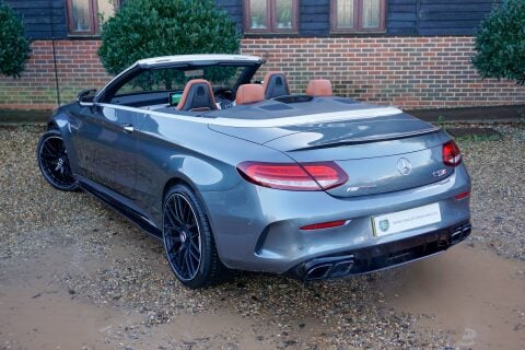 Mercedes-Benz C63S AMG 4.0 V8 Cabriolet Premium Plus registered September 2019 (69) finished in Selenite Grey Metallic over Exclusive Saddle Brown AMG Nappa Leather Interior.