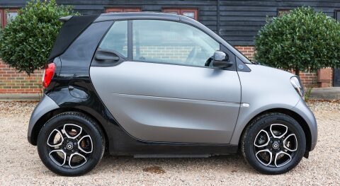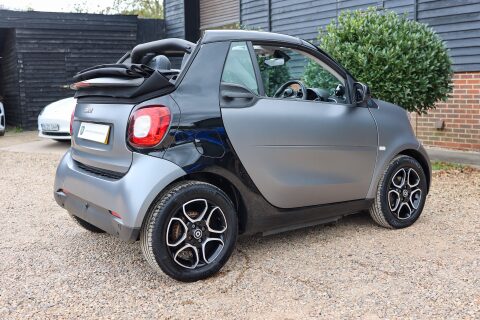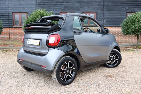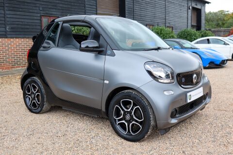 Smart EQ ForTwo Cabrio Prime Premium EV registered September 2019 (69) finished in Matte Grey with Black Leather Interior.